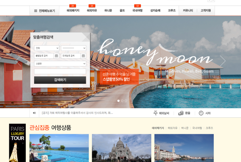 국내여행, 해외여행 등 다양한 여행상품을 소개하고 안내함은 물론, 실시간으로 여행상품을 예약할 수 있는 기능이 마련된 입점식 여행사 전문솔루션입니다.